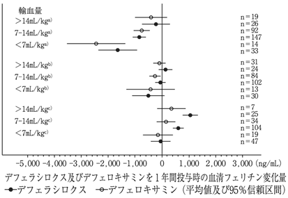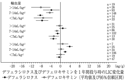 1ヵ月あたりの輸血量の違いによるLIC及び血清フェリチンの変化は以下のとおりであった17)。