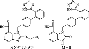 カンデサルタン シレキセチルはカルボキシルエステラーゼにより活性代謝物カンデサルタンに代謝され、さらに一部がCYP2C9により非活性代謝物M-Ⅱに代謝されるが、本態性高血圧症患者にカンデサルタン シレキセチルを投与したときのM-Ⅱの血中濃度及び尿中排泄率はカンデサルタンの血中濃度及び尿中排泄率に比べ低く、CYP2C9の遺伝的多型によるカンデサルタンの血中濃度への影響は少ないと考えられる5)。また、カンデサルタンはCYP1A1、1A2、2A6、2B6、2C8、2C9、2C19、2D6、2E1、3A4の代謝活性を阻害しない10)(in vitro)。