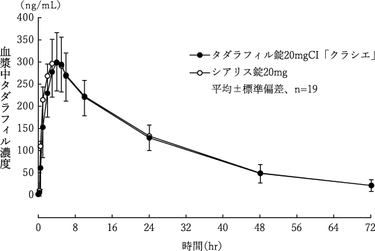 20) 健康成人における薬物動態(単回投与)(シアリス錠:2007年7月31日承認、申請資料概要2.7.2.2.2.1.1)