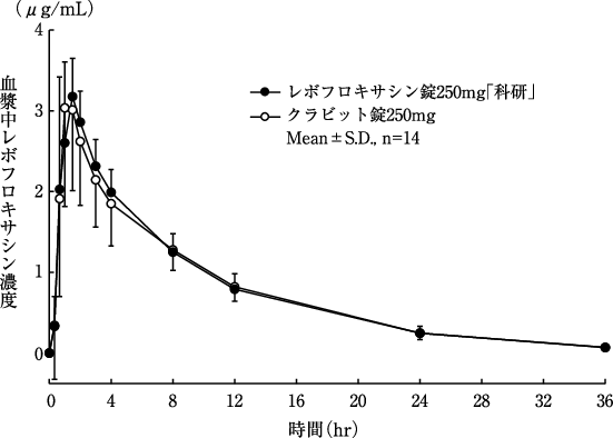 6) 社内資料:生物学的同等性試験(レボフロキサシン錠「科研」)