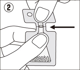 顆粒を大きい方の袋に集め、矢印付近の切り込み線に指をかけないようにして、図のように折る。 ↓