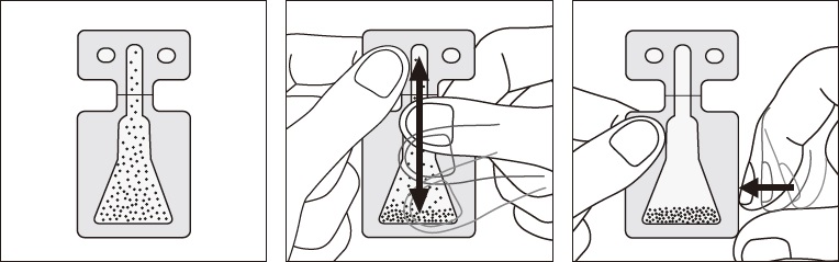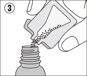 顆粒に手を触れないよう注意し、パックから直接溶解液に入れる。