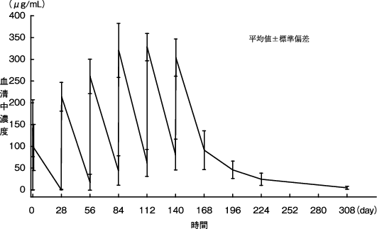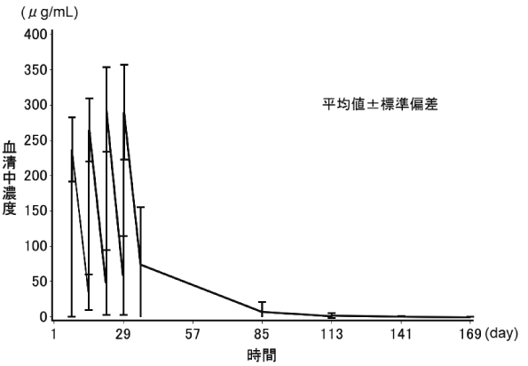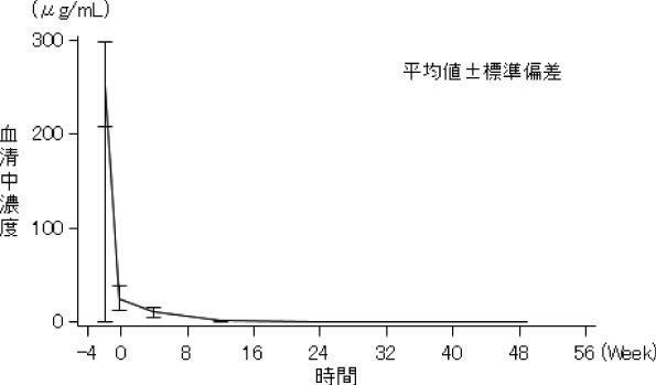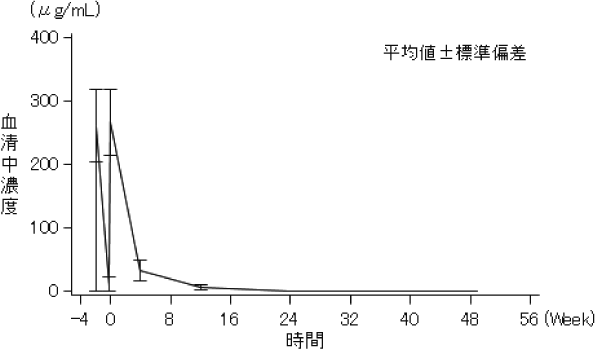 海外臨床試験において測定された356例中、本剤に対するヒト抗キメラ抗体は4例に検出された8)(外国人データ)。