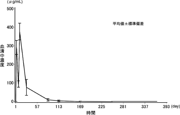 海外臨床試験において測定された356例中、本剤に対するヒト抗キメラ抗体は4例に検出された8)(外国人データ)。
