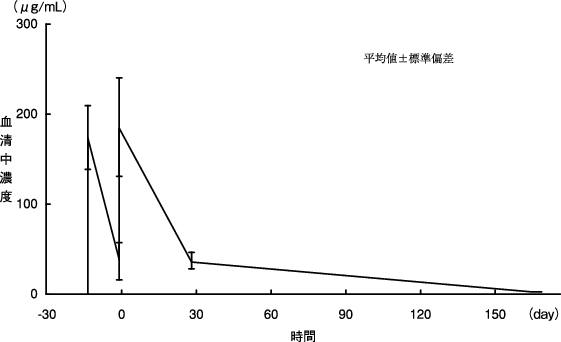 28) 「IDEC-C2B8単回投与時の薬物動態と腫瘍移行性」(承認年月日:2001年6月20日、申請資料概要 ヘ. 吸収、分布、代謝、排泄)