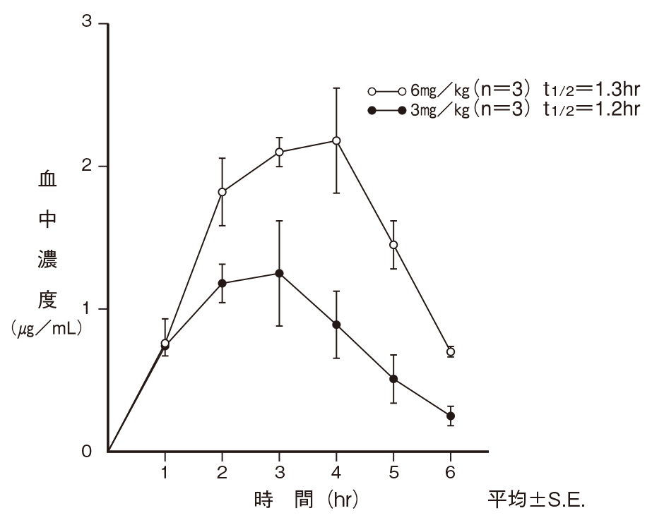 健康成人12例に10%細粒剤注4) 1g(セフテラム ピボキシルとして100mg(力価))を食後単回経口投与したときのCmaxは1.57μg/mL、AUC0-7は5.11μg・hr/mLであった5) 。