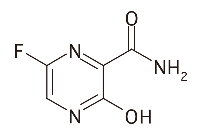 *細胞内でリボシル三リン酸体(ファビピラビルRTP)に代謝され、ファビピラビルRTPがインフルエンザウイルスや重症熱性血小板減少症候群(SFTS)ウイルスの複製に関与するRNAポリメラーゼを選択的に阻害すると考えられている17),18) 。ヒト由来DNAポリメラーゼα、β及びγに対して、ファビピラビルRTP(1000μmol/L)は、αへの阻害作用は示さず、βに対して9.1〜13.5%、γに対して11.7〜41.2%の阻害作用を示した。また、ファビピラビルRTPのヒト由来RNAポリメラーゼⅡに対する阻害作用(IC50値)は、905μmol/Lであった19) 。