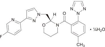 [(2S)-2-{[3-(5-Fluoropyridin-2-yl)-1H-pyrazol-1-yl]methyl}-1,3-oxazinan-3-yl][5-methyl-2-(2H-1,2,3-triazol-2-yl)phenyl]methanone 1/4hydrate