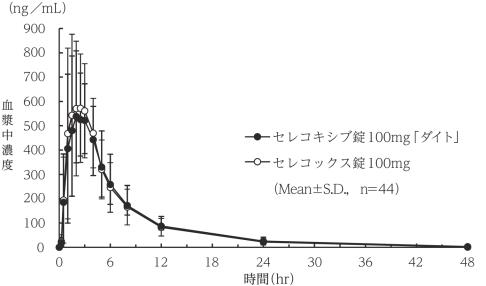 9) 社内資料:生物学的同等性試験(セレコキシブ錠100mg「ダイト」)