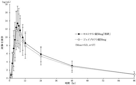 16) 社内資料:生物学的同等性試験(セルトラリン錠50mg「科研」)