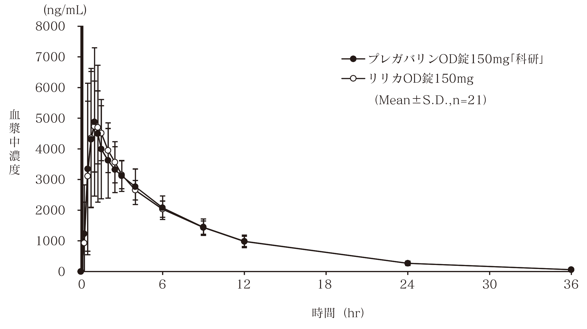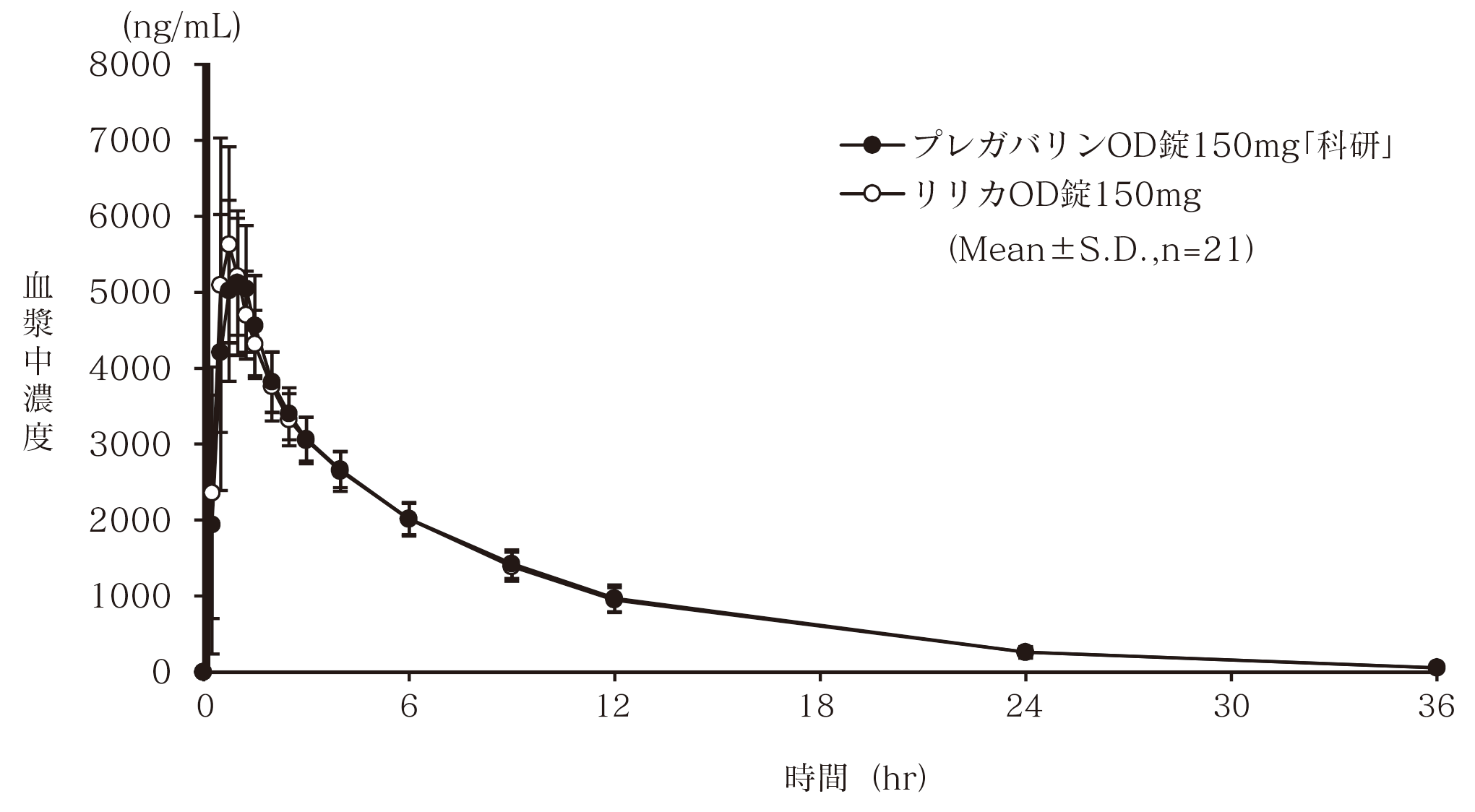 7) 社内資料:生物学的同等性試験(プレガバリンOD錠150mg「科研」)