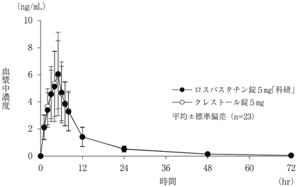 11) 社内資料:生物学的同等性試験(ロスバスタチン錠5mg「科研」)