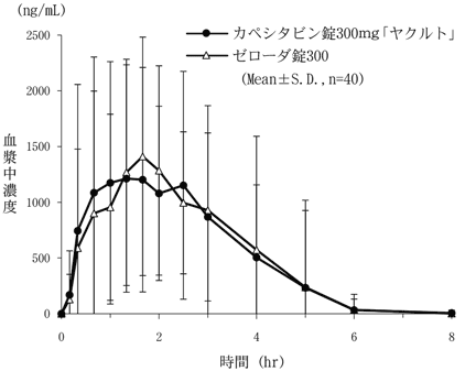 8) 社内資料:生物学的同等性試験(カペシタビン錠300mg「ヤクルト」)