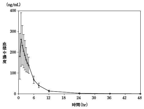各6例の平均値(標準偏差)、tmaxは中央値(最小値-最大値)