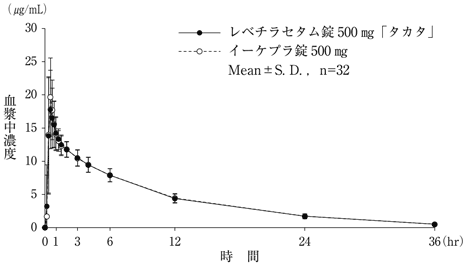 10) 社内資料:生物学的同等性試験(レベチラセタム錠500mg「タカタ」)