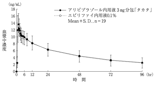 4) 社内資料:生物学的同等性試験(アリピプラゾール内用液 3 mg分包「タカタ」)