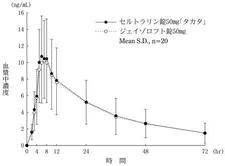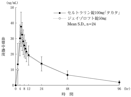 16) 社内資料:生物学的同等性試験(セルトラリン錠50mg「タカタ」)