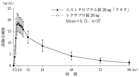 5) 社内資料:生物学的同等性試験(エスシタロプラム錠20mg「タカタ」)