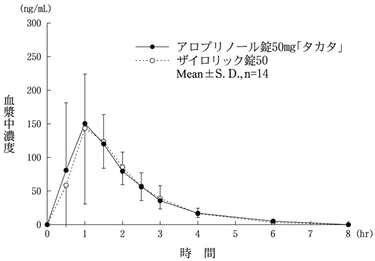 7) 社内資料:生物学的同等性試験(アロプリノール錠50mg「タカタ」)