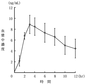 健康成人に、d-クロルフェニラミンマレイン酸塩4mgを経口投与したときの血漿中濃度推移及び薬物速度論的パラメータは以下に示したとおりであった3) 。(注:本剤の承認された1回用量は2mgである。)