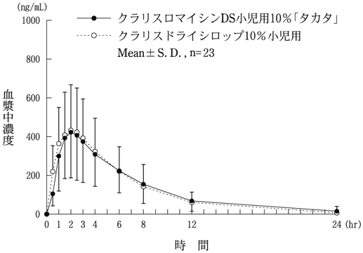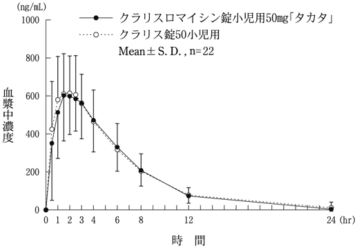 22) 社内資料:生物学的同等性試験(クラリスロマイシンDS小児用10%「タカタ」)