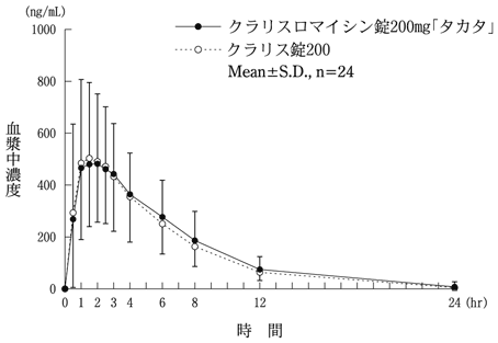26) 社内資料:生物学的同等性試験(クラリスロマイシン錠200mg「タカタ」)