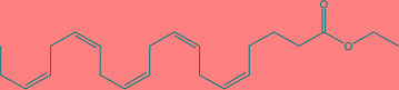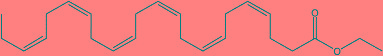 オメガ-3脂肪酸エチルは淡黄色の液であり、2,2,4-トリメチルペンタン、エタノール(95)及びテトラヒドロフランに混和し、水にほとんど溶けない。注)本品はイコサペント酸エチルとドコサヘキサエン酸エチルを主成分として構成される。以下にイコサペント酸エチルとドコサヘキサエン酸エチルを示す。