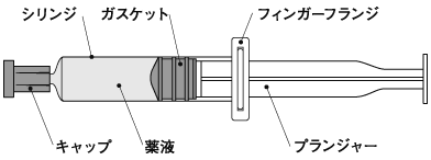 注意:プランジャーを持って無理に引き出さないこと。(ガスケットが変形し、薬液が漏出するおそれがある。)