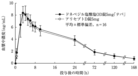 2) 健康成人における薬物動態(反復経口投与試験)(アリセプト錠;1999年10月8日承認、申請資料概要ヘ.3.(1)1))
