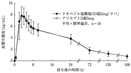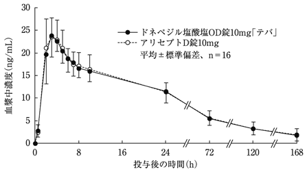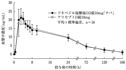 1) 健康成人における薬物動態(単回経口投与試験)(アリセプト錠;1999年10月8日承認、申請資料概要ヘ.3.(1)1))
