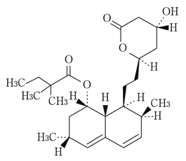 in vitroにおいてシンバスタチンのオープンアシド体はHMG-CoA還元酵素を拮抗的に阻害した。シンバスタチンは各種培養細胞を用いた試験及びラットに経口投与した試験において[14C]酢酸からの[14C]コレステロール合成を阻害した。また、ヒト肝癌細胞由来のHep G2細胞を用いた試験及びコレステロール負荷ウサギに経口投与した試験において、シンバスタチンは肝LDL受容体活性を増強させた11),12),13)。