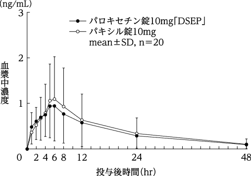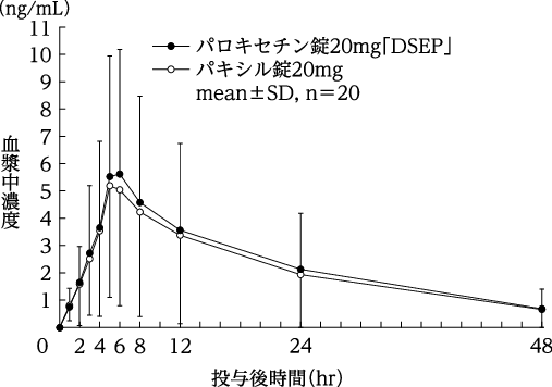 7) 20mg単回経口投与した時の食事の影響(パキシル錠:2000年9月22日承認、申請資料概要ヘ.3.7.1)