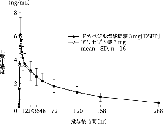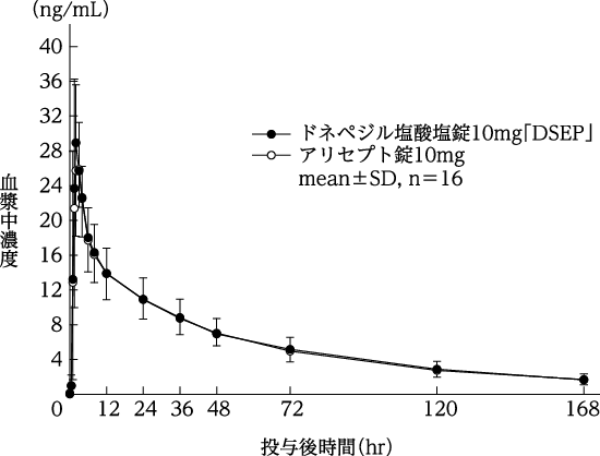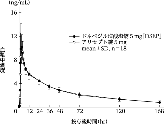 1) 健康成人における薬物動態(単回経口投与試験)(アリセプト錠:1999年10月8日承認、申請資料概要ヘ.3.(1))