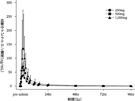 1) 健康成人におけるアビラテロンの薬物動態の検討(ザイティガ錠:2014年7月4日承認、CTD2.7.2.2.2.1)