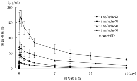 6) 国内第Ⅰ相試験-初回投与時の血中濃度(2001年4月4日承認、申請資料概要へ.3-1-1-2)