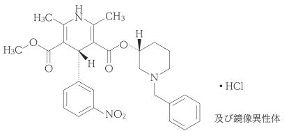 ヒトの血漿中、尿中に検出された代謝物及び動物での代謝研究から、ヒトにおける代謝反応は主として3位側鎖のベンジル基の脱離(N-脱アルキル化)、3位の1-ベンジル-3-ピペリジルエステル及び5位のメチルエステルの加水分解、ジヒドロピリジン環の酸化、2位のメチル基の酸化と考えられている6),7)。