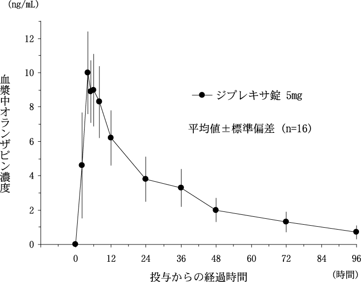 通常、成人にはオランザピンとして5~10mgを1日1回経口投与により開始する。維持量として1日1回10mg経口投与する。なお、年齢、症状により適宜増減する。ただし、1日量は20mgを超えないこと。