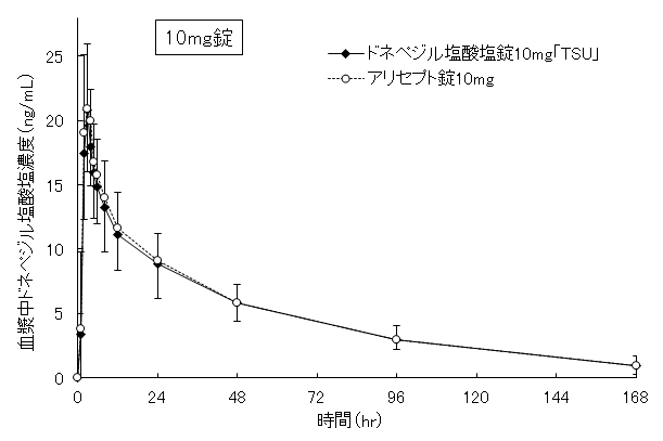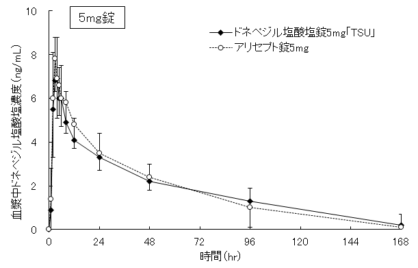1) 健康成人における薬物動態(単回経口投与試験)(アリセプト錠;1999年10月8日承認、申請資料概要ヘ.3.(1))