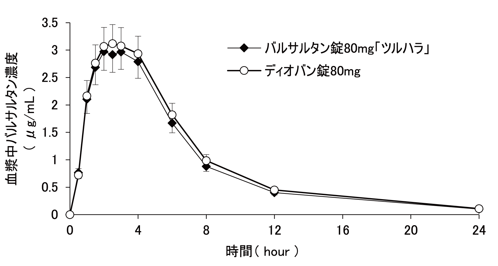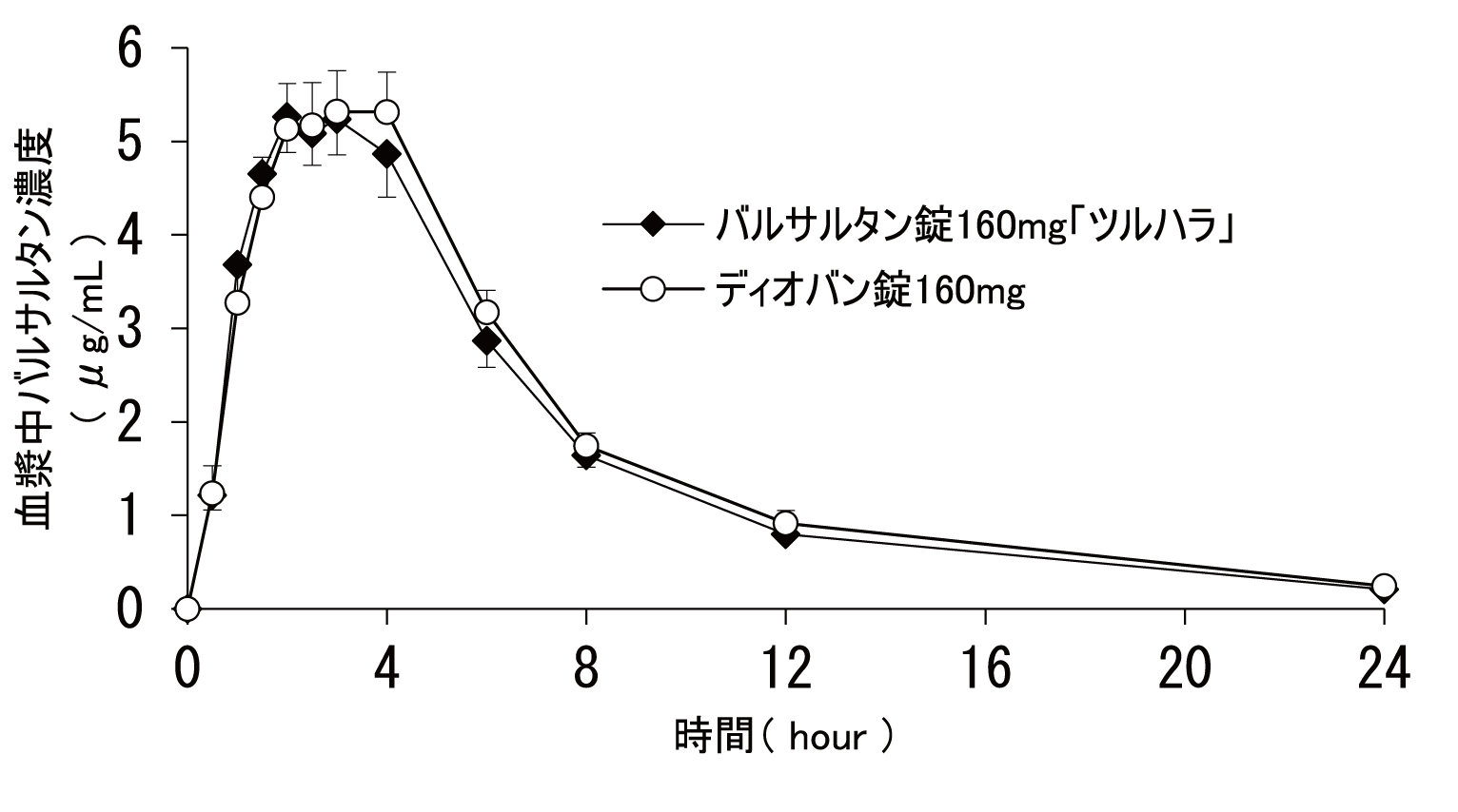 バルサルタン錠 20mg「ツルハラ」14)、バルサルタン錠 40mg「ツルハラ」15)は、「含量が異なる経口固形製剤の生物学的同等性試験ガイ ドライン(平成 24 年 2 月 29 日薬食審査発 0229 第 10 号)」に基づき、 バルサルタン錠 80mg「ツルハラ」を標準製剤としたとき、溶出挙動が 等しく、生物学的に同等とみなされた。