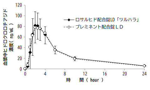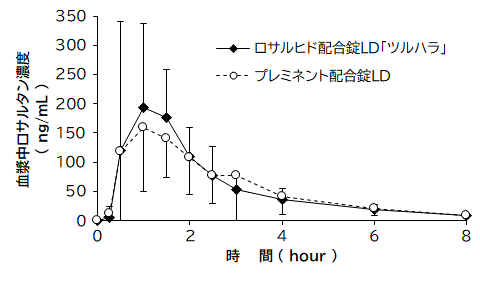 〈ロサルヒド配合錠HD「ツルハラ」〉ロサルヒド配合錠HD「ツルハラ」は、ロサルヒド配合錠LD「ツルハラ」を標準製剤としたとき、溶出挙動が等しく、生物学的に同等とみなされた18)。