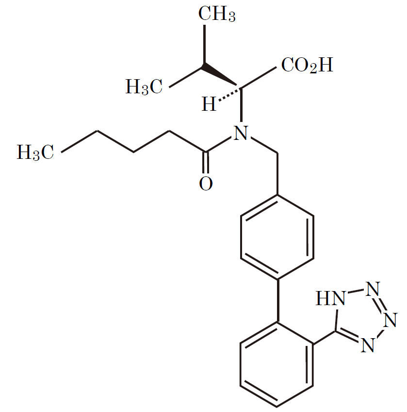 本剤は、バルサルタン及びヒドロクロロチアジドの配合剤である。バルサルタンは、アンジオテンシンⅡ受容体のサブタイプであるAT1受容体に結合し、昇圧系として作用するアンジオテンシンⅡに対して拮抗することによって降圧効果をあらわす。ヒドロクロロチアジドはチアジド系利尿剤で、主として遠位尿細管でのNa及び水の再吸収を抑制し、尿排泄を増加させることにより循環血漿量の減少を引き起こし降圧効果を発揮する。ヒドロクロロチアジドのナトリウム利尿作用によりレニン・アンジオテンシン系が活性化され、バルサルタンの降圧効果が増強されると考えられている24),25),26)。