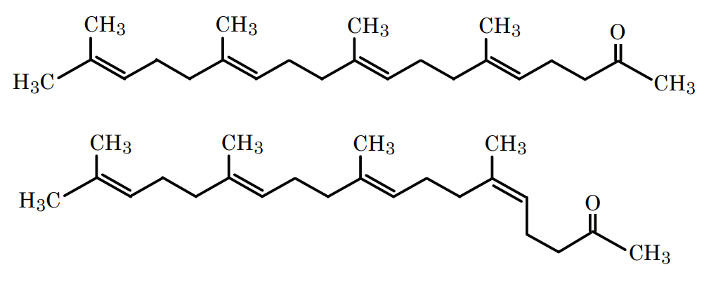 (5E, 9E, 13E ) -6,10,14,18-Tetramethylnonadeca-5,9,13,17-tetraen-2-one (5Z, 9E, 13E ) -6,10,14,18-Tetramethylnonadeca-5,9,13,17-tetraen-2-one 本品はモノシス体及びオールトランス体からなり、その比は約 2:3 である。