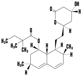 in vitroにおいてシンバスタチンのオープンアシド体はHMG-CoA還元酵素を拮抗的に阻害した。シンバスタチンは各種培養細胞を用いた試験及びラットに経口投与した試験において[14C]酢酸からの[14C]コレステロール合成を阻害した。また、ヒト肝癌細胞由来のHep G2細胞を用いた試験10)及びコレステロール負荷ウサギに経口投与した試験11)において、シンバスタチンは肝LDL受容体活性を増強させた。