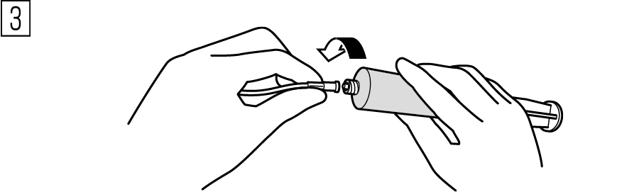 シリンジ先端部に直接手が触れないよう注意し、注入ラインの接合部をしっかりと装着・ロックさせる。