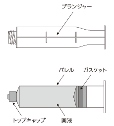 ・バレル内壁に気泡が付着することがあるため、また、シリンジが破損するおそれがあるため、強い衝撃を避けること。