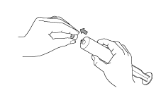 1.シリンジ先端のトップキャップを外す。