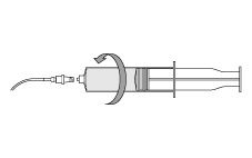2.シリンジポンプにセットする前に、十分注意してバレル内のエアーを抜き取った後、シリンジ先端に、注入ラインの接合部をしっかりと装着・ロックする。