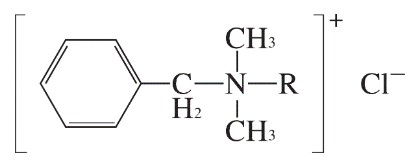 [C6H5CH2N(CH3)2R]ClR:C8H17~C18H37で主としてC12H25及びC14H29からなる