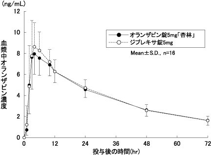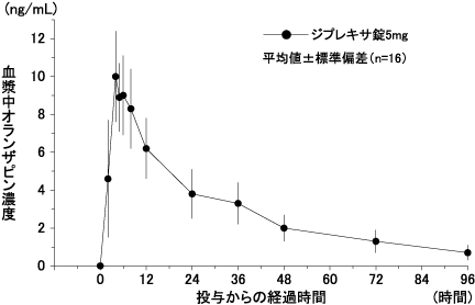 20) 5mg錠を単回投与した時の薬物動態(日本人:E205試験)(ジプレキサ錠:2000年12月22日承認、申請資料概要ヘ.3.2.1)