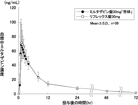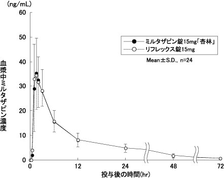 8) キョーリンリメディオ株式会社社内資料:ミルタザピン錠15mg「杏林」・30mg「杏林」の生物学的同等性試験に関する資料